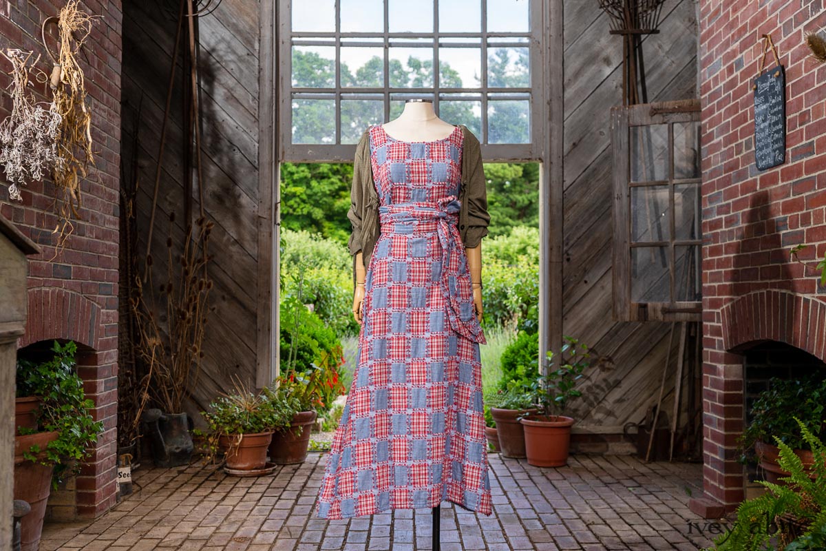 Covante Frock in Rose Garden Patch Plaid Voile; Fairholme Sash in Rose Garden Plaid Patch Voile; Chevallier Cardigan in Herb Garden Soft Ribbed Knit. Ivey Abitz at Boscobel House and Gardens