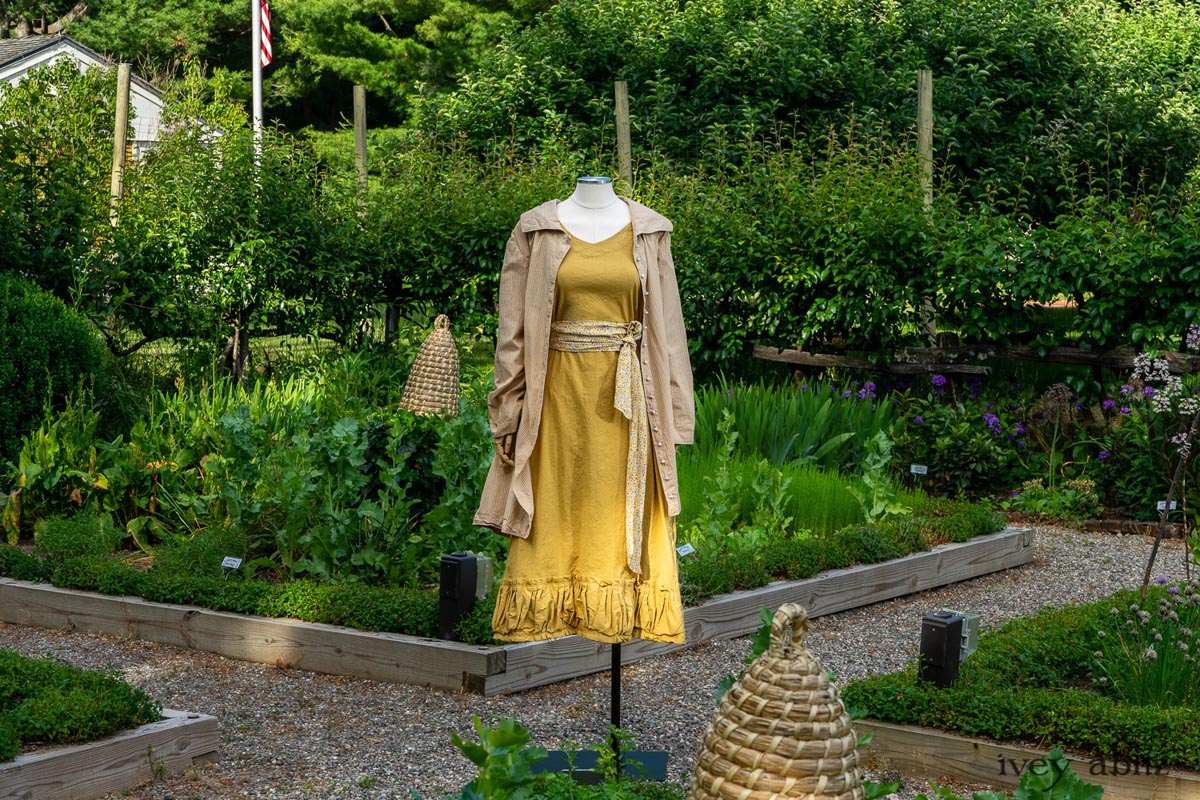 Gabled Shirt Jacket in Sunnyside Washed Linen; Porte Cochere Sash in Yellow Days Soft Floral Knit; Gabled Frock in Yellow Days Washed Stretch Weave. Ivey Abitz at Boscobel House and Gardens